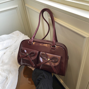 韩版蝴蝶结单肩腋下包包女2025新款手提枕头包保龄球包时尚通勤包