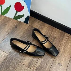 香港复古方头晚风单鞋女2025夏季新款时尚粗跟一字带浅口玛丽珍鞋