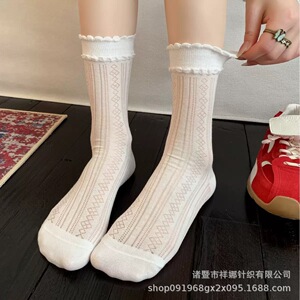 女性用夏用薄い白い靴下、純綿ミッドカーフソックス、夏用通気性のある非伸縮性パイルソックス、ミュウバレエスタイル