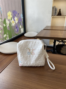 跨境新款高颜值褶皱收纳包蝴蝶结刺绣化妆包旅行外出大容量收纳袋