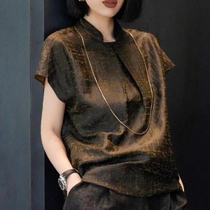新中式女装国风短袖衬衫2025新款夏季高级感复古独特别致醋酸上衣