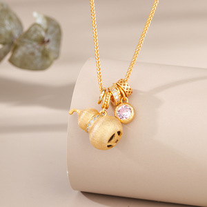 小红书爆款s925纯银古法拉丝葫芦圆环项链女新中式精致时尚高级感