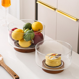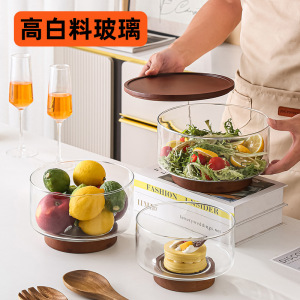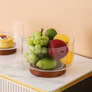 外贸热销橡木高白料玻璃果盘沙拉碗高脚水果盘客厅零食糖果干果盘