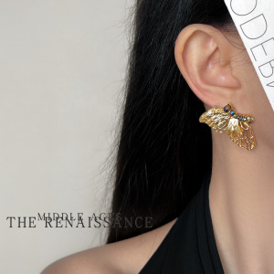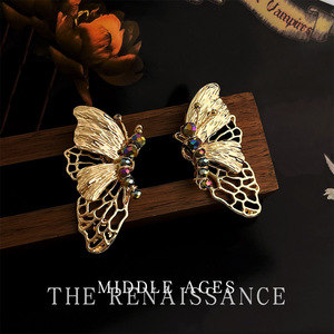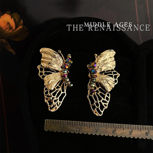 ヴィンテージライトミッドセンチュリースタイルレトロニッチ中空二層蝶イヤリングパーソナライズされた誇張されたデザインのイヤリング女性用