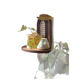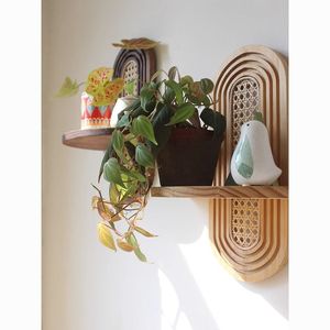 中古壁挂墙面装饰置物架民宿侘寂风卧室客厅背景墙上实木藤编花架