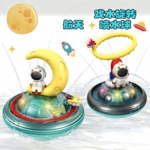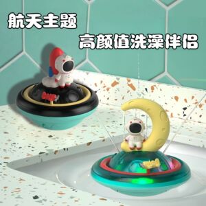 国境を越えた子供用バスルームお風呂おもちゃ月宇宙飛行士水スプレー球発光回転リング水スプレーおもちゃ