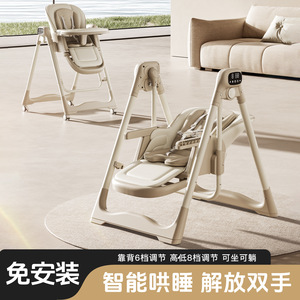 宝宝餐椅智能蓝牙电动摇椅可坐躺婴儿吃饭椅家用折叠成长儿童餐椅