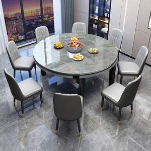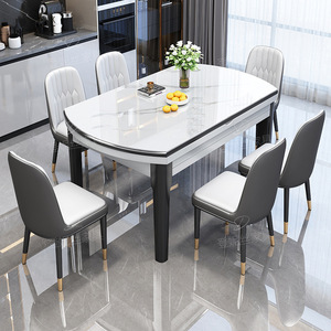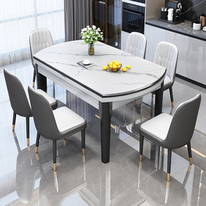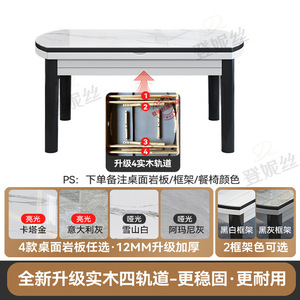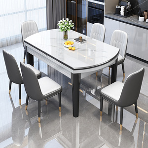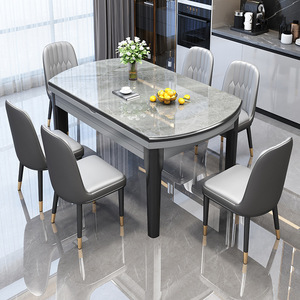 亮光岩板餐桌椅组合现代简约餐桌家用可伸缩圆桌加厚实木饭桌子