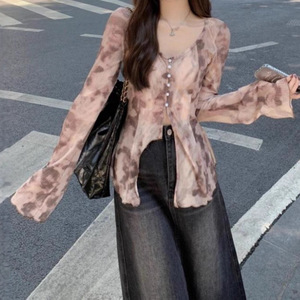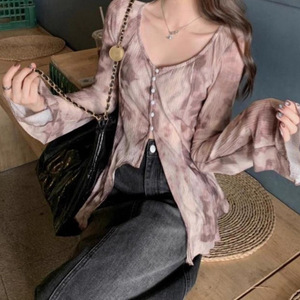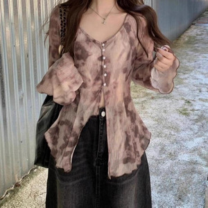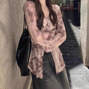 法式V领晕染长袖衬衫女2025夏季新款气质时尚显瘦小众百搭上衣潮