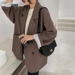 新しい気質スーツコーヒー色ルーズファッション大きいサイズ韓国カジュアルスーツジャケット女性の春と秋のトップ