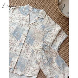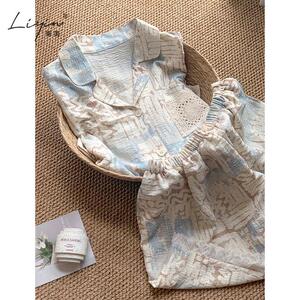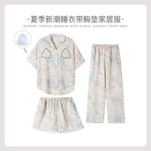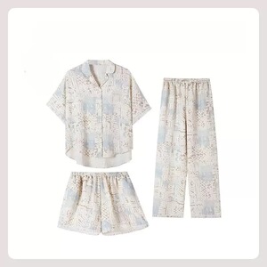 Li Yin ニッチデザイナーの新しいバブルコットンレディースパジャマ夏半袖外出ホームウェア 3 点セット