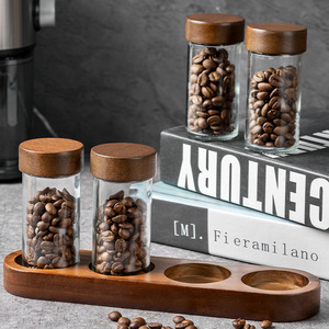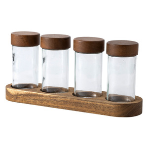 アカシア材保存瓶 日用品用 高ホウケイ酸透明蓋付き キッチン保存瓶 4個セット ベーススパイス