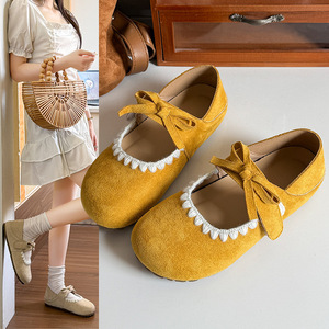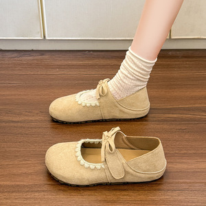 简约小众ins潮甜美蝴蝶结魔术贴单鞋2025新款踩脚两穿设计勃肯鞋