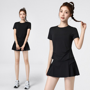 绝美网球服女2025新款夏季运动短裙气质显瘦瑜伽套装专业健身上衣