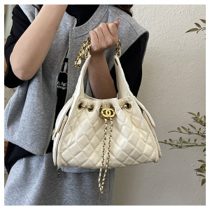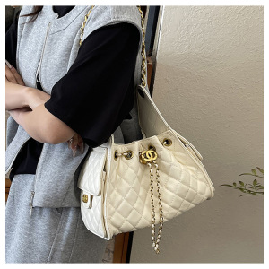 一件代发菱格链条小香风水桶包2025夏季新款女包时尚潮抽带单肩包