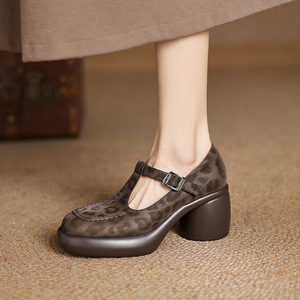 フレンチレトロ防水プラットフォーム厚底メリージェーンシューズ女性用2025春新作Tストラップ本革プラットフォームソールシューズ