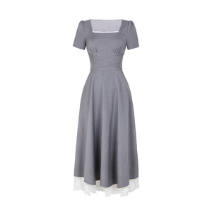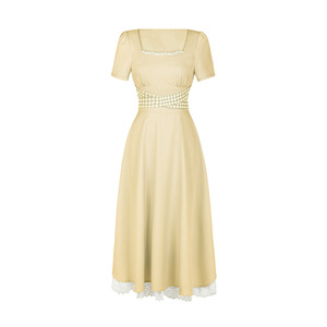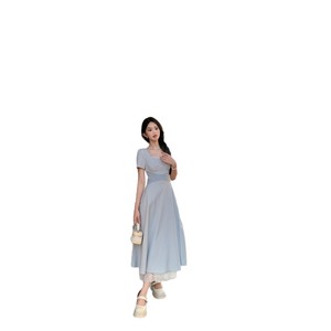 クロスボーダー2025初夏着用チェック柄ストラップピンチウエストスカート半袖長袖着痩せワンピース