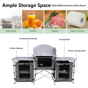 亚马逊爆款户外野营移动厨房铝合金折叠桌带布柜