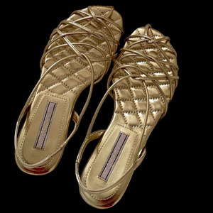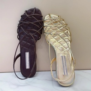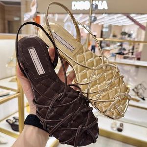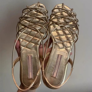 明星同款碱水结编织露趾2025夏季波西米亚细带金色平底罗马凉鞋女