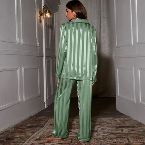 2025 越境貿易ヨーロッパとアメリカンスタイルの女性用パジャマカーディガンラペルストライプルーズカジュアルホームウェアツーピーススーツ女性用