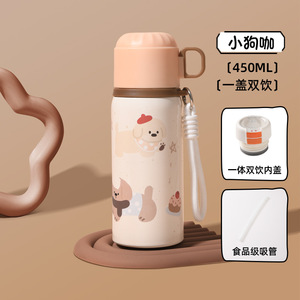 かわいい子供用ダブルドリンク魔法瓶カップ 316 ステンレス鋼真空カップ女の子の見栄えの良いカップストロー付き学生ウォーターカップ