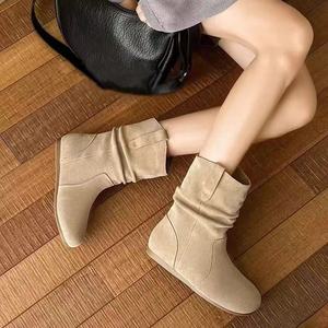 2025年新作インナー高さアップビルケンシュトックアンクルブーツマーティンブーツレディースレトロパイルブーツ超小型ブラウンショートブーツ