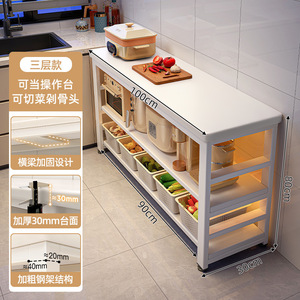 厨房多功能置物架落地切菜桌子工作台多层餐边储物柜收纳架窄边柜