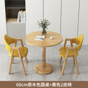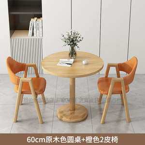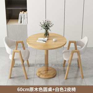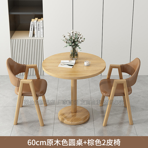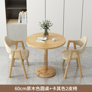 ✷※卡其色2皮椅+60原木色圆桌✷※