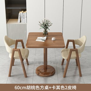 ✷※卡其色2皮椅+60*60胡桃色方桌✷※