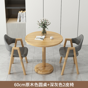 ✷※深灰色2皮椅+60原木色圆桌✷※