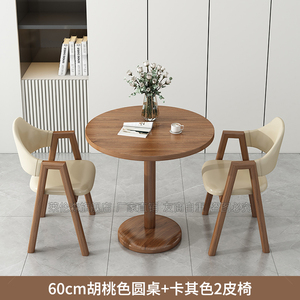 ✷※卡其色2皮椅+60胡桃色圆桌✷※