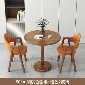 ✷※橙色2皮椅+60胡桃色圆桌✷※
