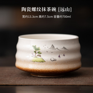 陶瓷螺纹抹茶碗【汝窑梅子青】