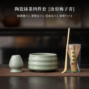 远山螺纹陶瓷抹茶四件套日式点茶道打抹茶器具宋代茶百戏茶刷茶筅