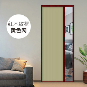 アルミ合金マホガニー木目フレーム+イエローハニカムカーテン【ステンレスドアロック無料】