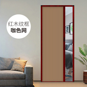 アルミ合金マホガニー木目フレーム+グレーハニカムカーテン【ステンレス製ドアロック無料】
