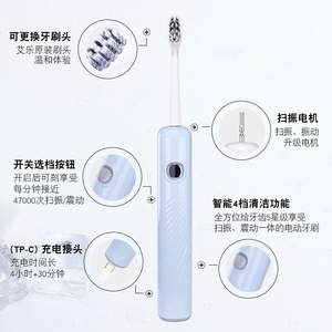 ソースファクトリー 電動歯ブラシ スマートスイープ振動一体型全自動4速全身防水柔らか毛電動歯ブラシ