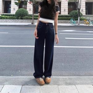 2025早秋莱赛尔软牛仔 丹宁蓝 早秋款休闲宽松阔腿牛仔裤