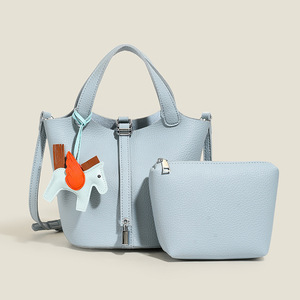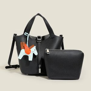 流行爆款荔枝纹子母水桶包包女2025新款休闲复古手提包休闲通勤包