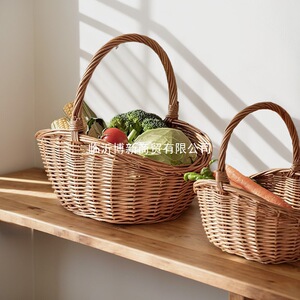手工柳编编织野餐手提篮蔬菜水果收纳筐藤编菜篮子圣诞礼品小篮子