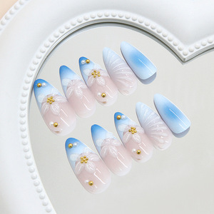 立体的なフレッシュブルーグラデーションフレンチアイススルーユリパールニッチヨーロッパとアメリカのインスタイル取り外し可能なネイルアートピース24
