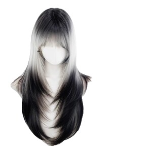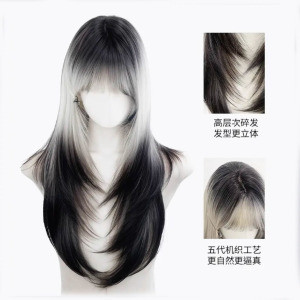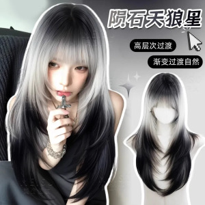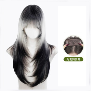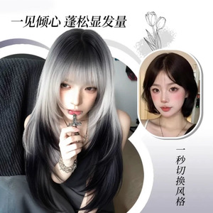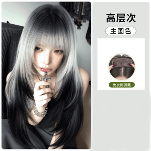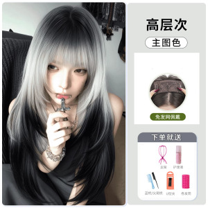 免发网假发天狼星高层次长直发黑白挑染空气刘海自然渐变整顶全头