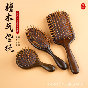檀木气垫梳气囊按摩梳长发卷发家用木梳头部经络梳顺发檀木气囊梳
