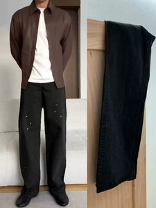 ハイバージョン Vujade010 カウキングケン同スタイル クリーンフォット ブラック ウォッシュ加工 オールド ユニセックス デニム パンツ