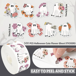 500 個ハロウィンステッカー花ゴーストデカールかわいい粘着シールラベル食料品ベーキングバッグパーティーステッカー