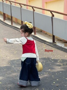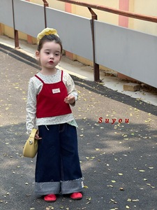 Suyou 秋の女の子、小中型の女の子、韓国風フェイクツーピーストップス、万能ジーンズ 663022