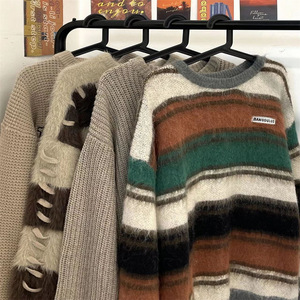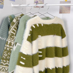 秋冬新款学院风毛衣女2024韩版宽松显瘦休闲条纹上衣长袖针织衫