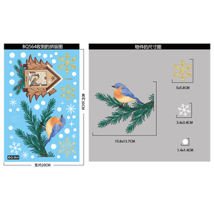 クリスマスツリーステッカーカーディナルバードガラスステッカークリスマス装飾窓静電ステッカー雪景色スノーフレーク
