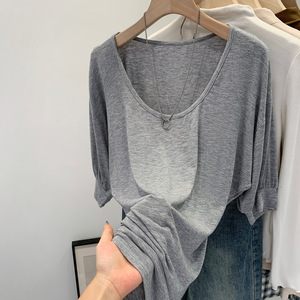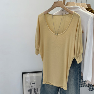 韩系chic别致U领短袖T恤女夏2025新款宽松显瘦轻熟小众不撞款上衣