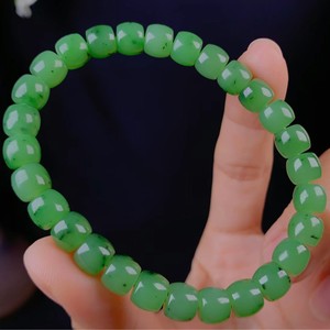 和田玉俄料碧玉乌兰苹果绿乌兰海直切手链约7*8mm手串女直播供货